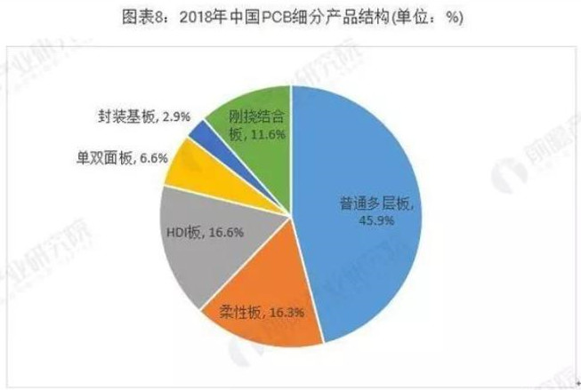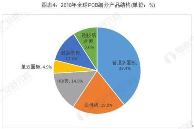 根據(jù)Prismark的統(tǒng)計,2018年全球PCB細分產(chǎn)品的市場結(jié)構(gòu)如下: